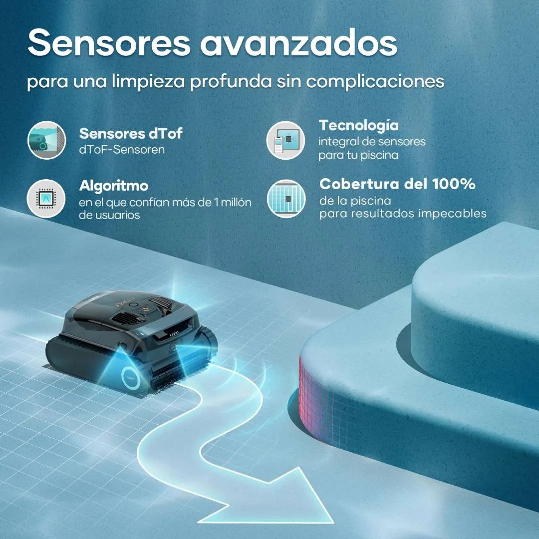 El Aiper Scuba X1 AR es un robot limpiapiscinas inalámbrico, potente y con navegación inteligente (WavePath 3.0) que limpia fondo, paredes y línea de flotación, capturando residuos finos (3 µm) gracias a su filtro MicroMesh. Se controla por app, ofrece modos de limpieza variados y hasta 3 horas de autonomía, destacando por su alta succión y capacidad para mapear piscinas complejas, estacionándose automáticamente para facilitar su extracción.